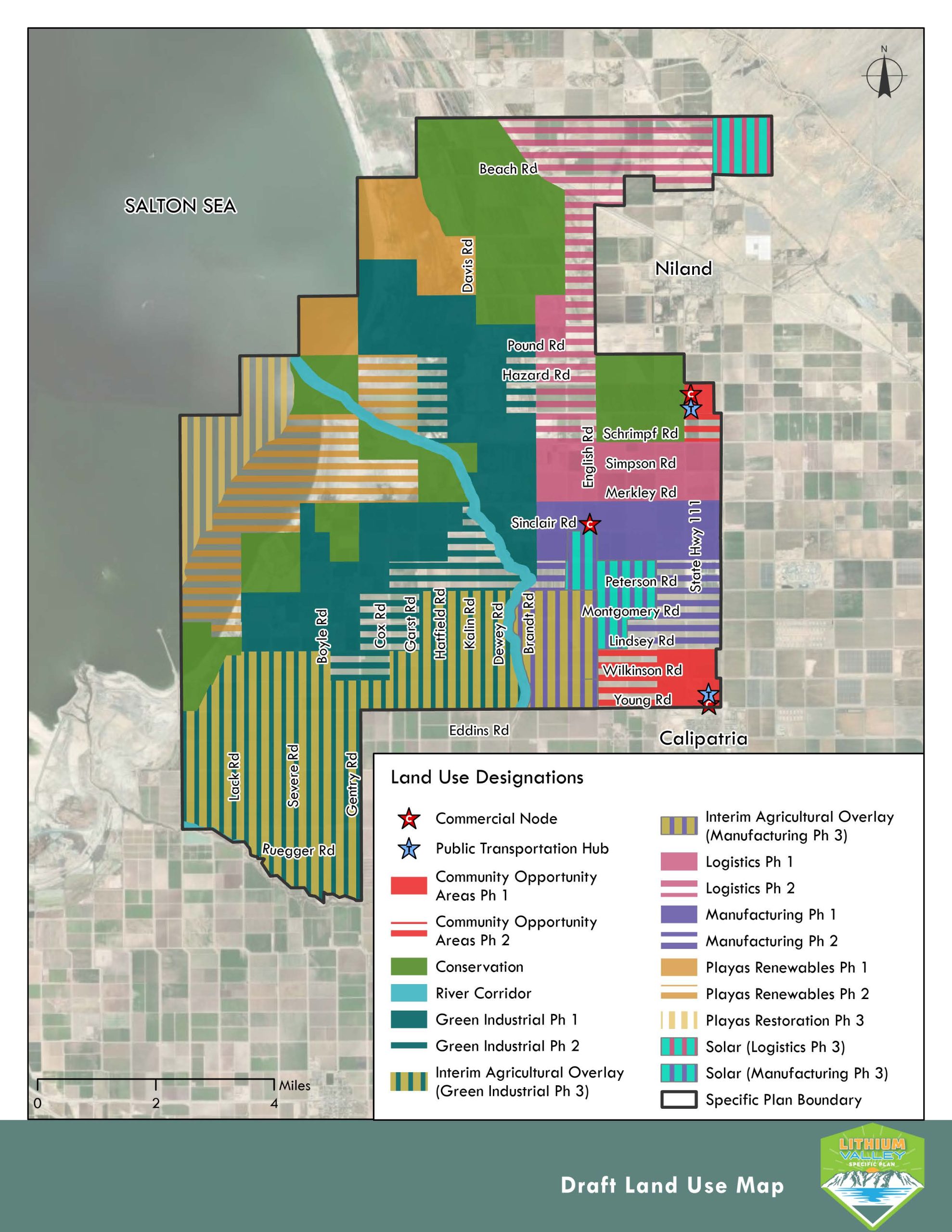 On June 30, 2022, Governor Gavin Newsom signed into law Senate Bill (SB) 125 authorizing the state to assist in developing Imperial County’s lithium resource in an area that is a part of the Salton Sea Known Geothermal Resource Area, known as Lithium Valley. Among other provisions, SB 125 appropriated funding to develop a Lithium Valley Specific Plan and Programmatic Environmental Impact Report (PEIR) and to distribute grants to local community-based organizations to conduct engagement related to the Specific Plan and PEIR. The Lithium Valley Specific Plan and PEIR is intended to map out and expedite the development and permitting of additional power plants, mineral recovery, lithium battery manufacturing, and other renewable industries within an approximately 51,786-acre area adjacent to the Salton Sea. A major goal is to encourage renewable energy industry investment that provides quality local jobs, while minimizing adverse effects on the environment and public health. This project will be a pivotal step for Imperial Valley and the nation towards a more sustainable and localized economy.